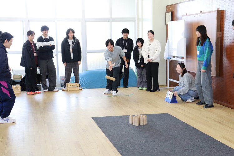 モルックは、年齢や性別、障がいの有無にかかわらず、誰もが一緒に楽しめるフィンランド生まれのユニバーサルスポーツです。当日は、学年・専攻や性別、学生と教職員の垣根を越えた自然な交流が生まれ、参加者一体となってモルックに熱中しました。